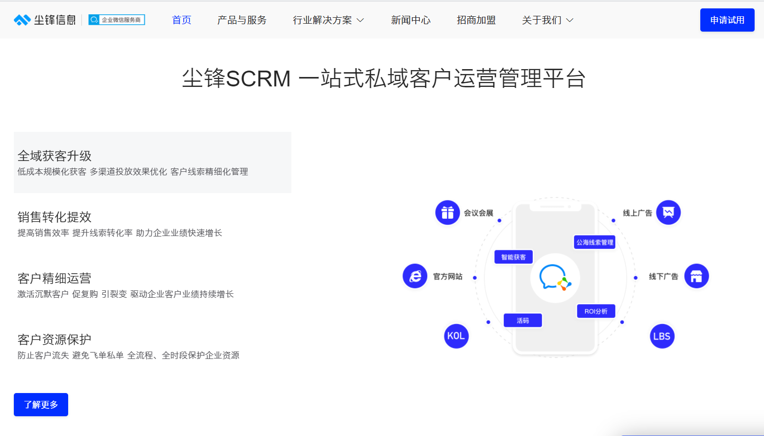 尘锋SCRM 是基于企业微信生态的一站式私域客户运营管理技术及行业解决方案供应商。
