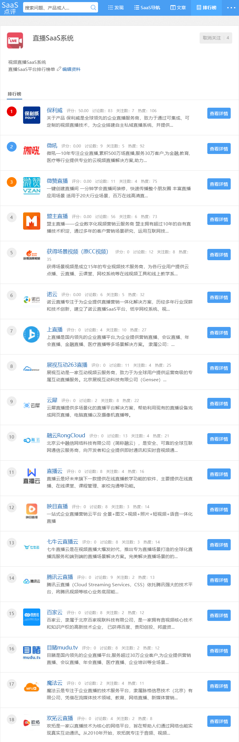 查看排行榜单:SaaS点评-直播SaaS排行榜
