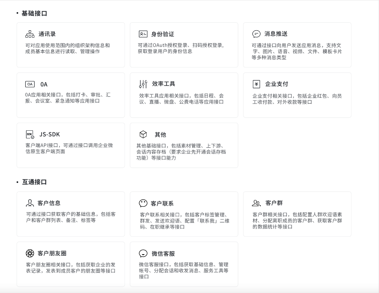 所以,我们研究了一下互通接口,发现这个接口其实是提供了企业微信和微信的互通能力,让企业可以通过微信这个渠道触达最终客户,这个是腾讯的独门秘技,完全掌握定价权。