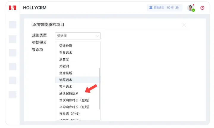 随着合力亿捷智能质检功能在服务全流程的不断渗透,在坐席进行保持通话操作时,系统将对坐席是否按照标准化服务流程使用保持通话话术与客户提前沟通,进行智能质检,确保客户等待意愿,管理者进一步规范坐席服务流程,提升整体客户体验。