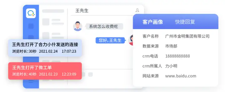 11.客户画像。给客户打造客户画像,标记来源渠道、客户状态、订单情况等,客服接待老客户能够及时定位,了解客户信息,也方便后续对客户做定制化的回访服务。