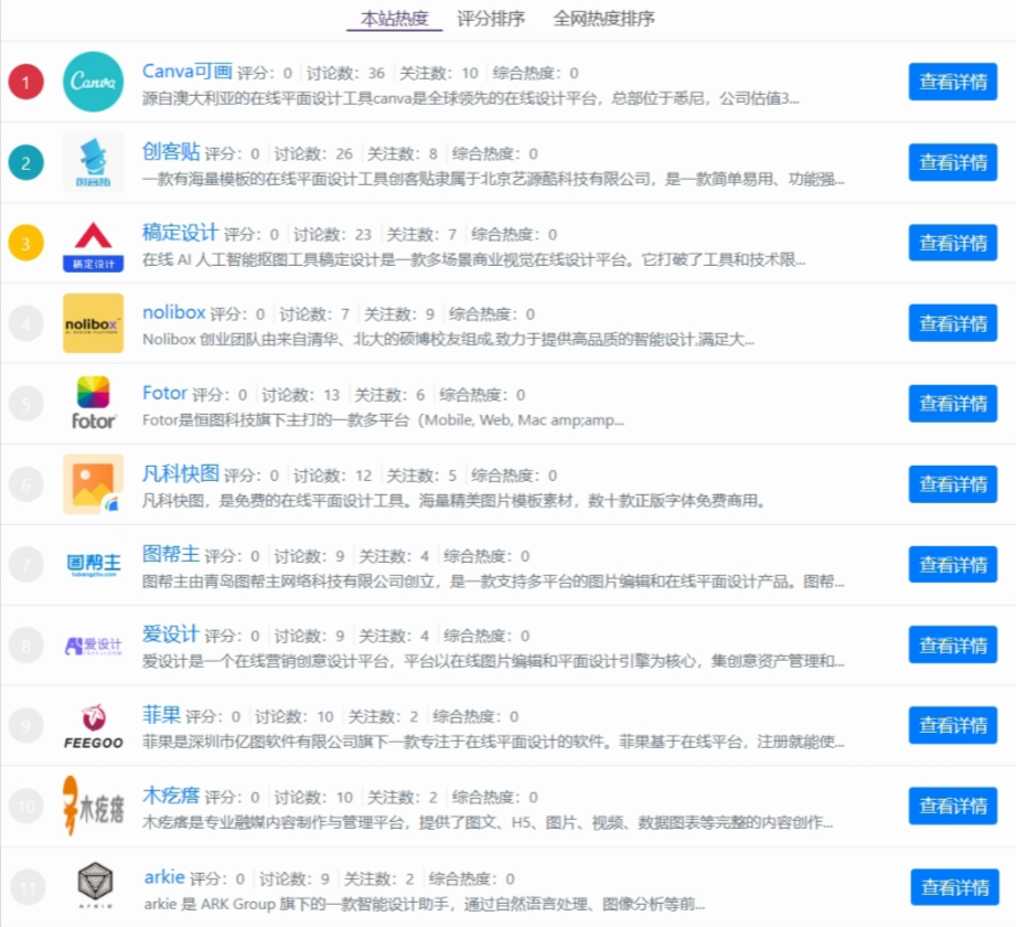 SaaS点评网(www.saasruanjian.com)自2019年上线以来不断收录用户评价,是一个SaaS软件选型交流平台,旨在帮助企业作出更好的选择,找到合适的产品。本篇介绍在线平面设计排行榜单。