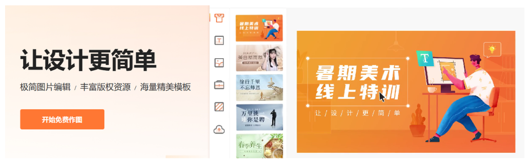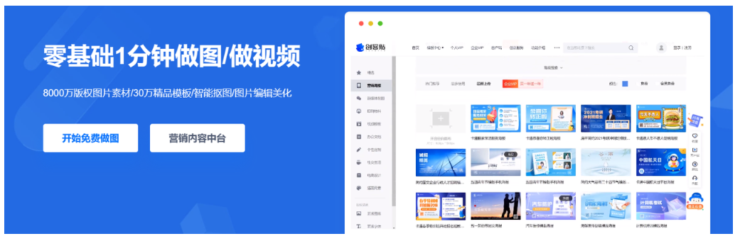 凡科快图是一款在线平面设计工具。其拥有海量精美的图片模板素材和丰富的版权资源,同时可以免下载即可完成在线作图,同时支持抠图、压缩、分割、加水印等图片编辑,数十款正版字体免费商用。三步在线处理图片,一分钟即可在线制作图片完成设计。
