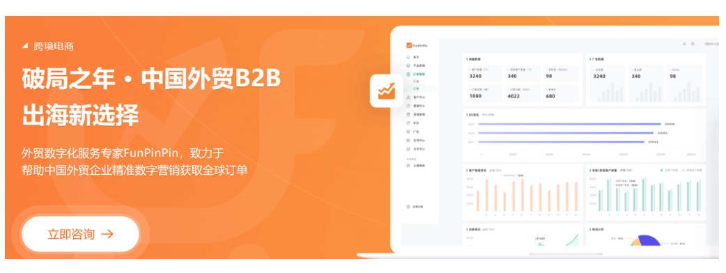 FunPinPin是一家具有营销基因的独立站建站服务平台,秉承着陪伴卖家做可持续跨境生意的经营理念,通过打通独立站生态圈,用SaaS工具为中国50万家外贸工厂和企业提供B2B建站、精准营销、垂直品类B2B平台服务。为中国卖家提供从建站到营销的一站式解决方案。