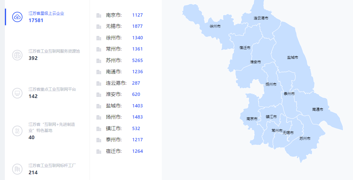 为贯彻落实《江苏省关于深化“互联网+先进制造业”发展工业互联网的实施意见》《江苏省制造业智能化改造和数字化转型三年行动计划(2022-2024年)》《江苏省加快推进工业互联网创新发展三年行动计划(2021-2023年)》等文件精神,鼓励中小企业上云用平台,江苏省工信厅将在政策、资金和服务上予以重点倾斜,现已见成效,累计上云企业17581家。