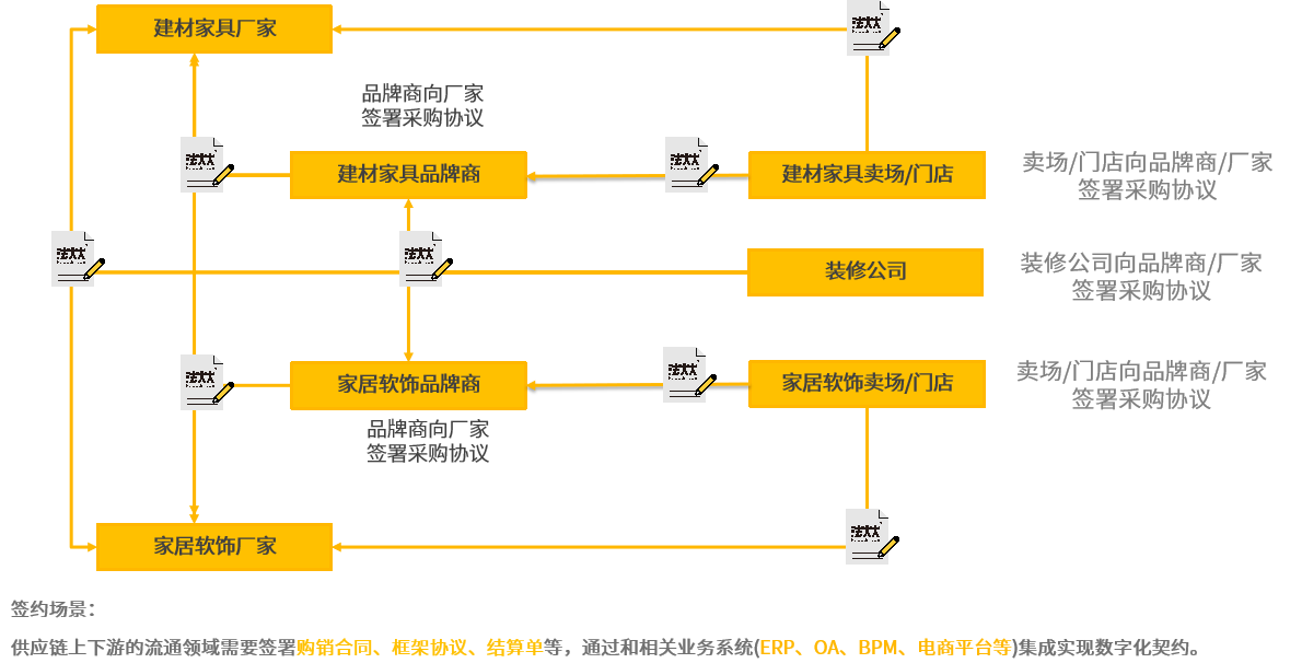随着互联网的快速发展以及政策的不断推动,家装行业“互联网+”趋势也不断凸显。行业内很多企业已经开始在全链条业务中使用电子合同,基于电子合同合规化、无纸化、线上化、智能化的价值赋能,实现家装从需求沟通、家装设计、选材、装修施工、验收付款等多环节,涉及大量的合同从线下纸质签约转移至线上数字化签约,并简化多环节、多领域、多对象的繁杂签署流程,进一步提升家装企业资源协调效率,打造全程电子化的“互联网家装”服务。