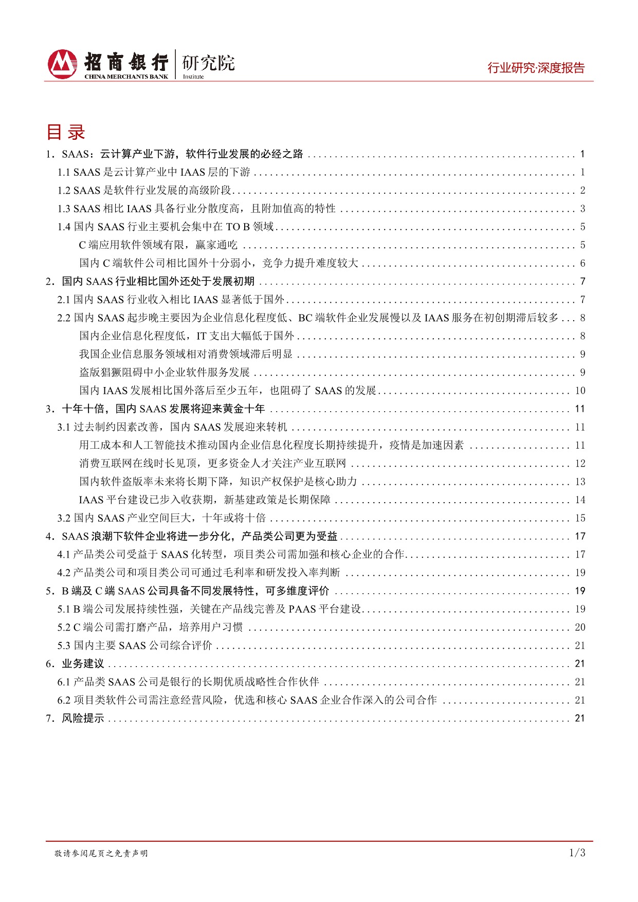 招商银行研究院:云计算行业之 SAAS 篇—— 十年十倍,国内 SAAS 将迎来黄金时代(附下载)