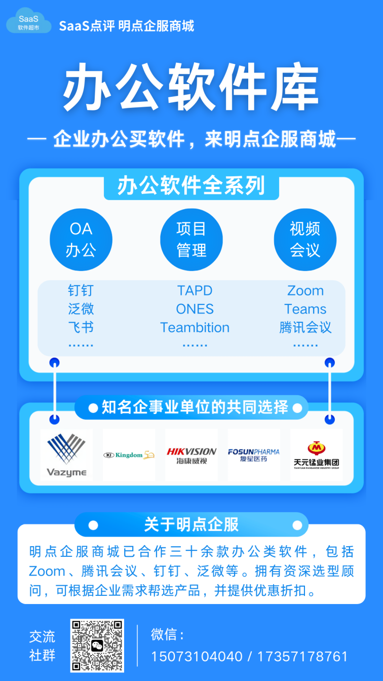 也可直接搜索添加微信号 Buysaas和手机号 15073104040,进行一对一咨询~选型采购群仅限甲方企业加入,谢绝软件厂商业务人员进群推销,禁止无关内容和各类广告。