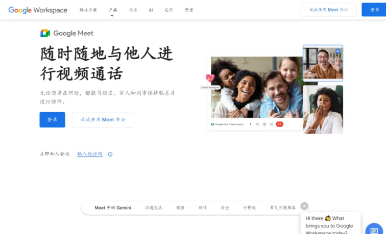 4.Google MeetGoogle Meet是一款与Google Workspace紧密集成的视频会议工具,适合需要跨部门沟通的企业或个人。它支持屏幕共享、实时字幕、加密和安全功能,且用户界面简洁易用。Google Meet对于小型团队和个人用户来说,尤其合适,且提供免费的基础版。
