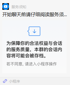 企业微信社群的会话存档提醒,仅对新进群的用户可见,清晰告知用户且不会对其他群成员产生骚扰**