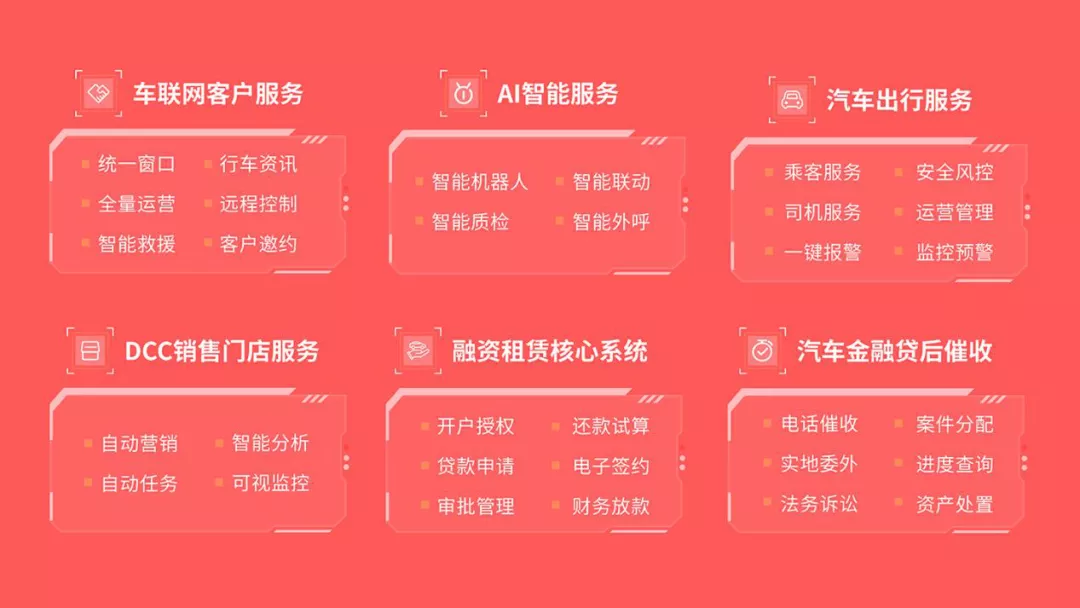 除车联网客户服务和AI智能服务之外,合力亿捷智能车联客户服务解决方案还包括汽车出行服务、DCC销售门店服务、融资租赁核心系统服务和汽车金融贷后催收服务等,全方位覆盖汽车行业的客户服务业务,以技术驱动服务体系一体化升级。