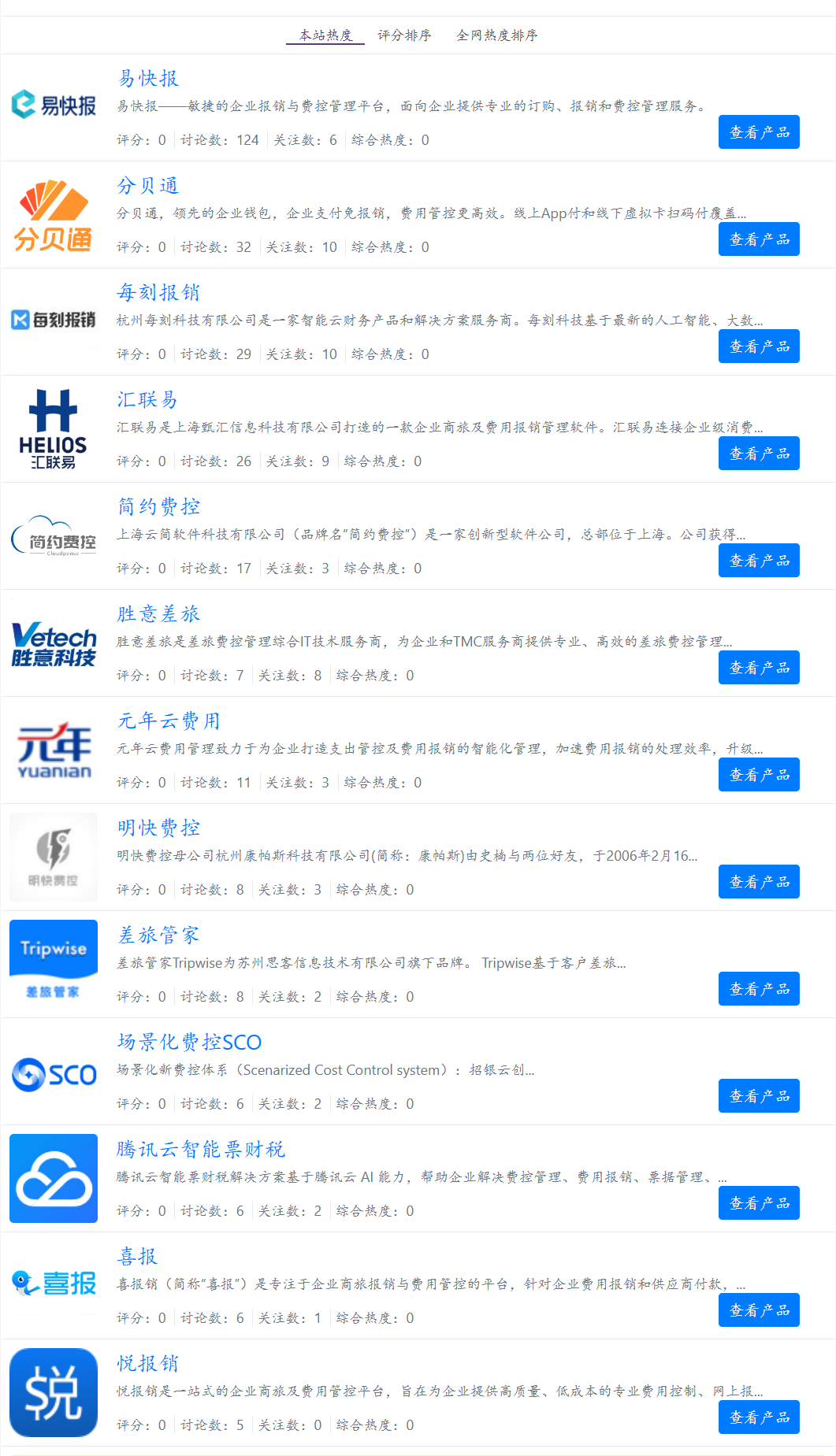查看最新排行榜单:费控管理软件SaaS-产品价格-产品评分