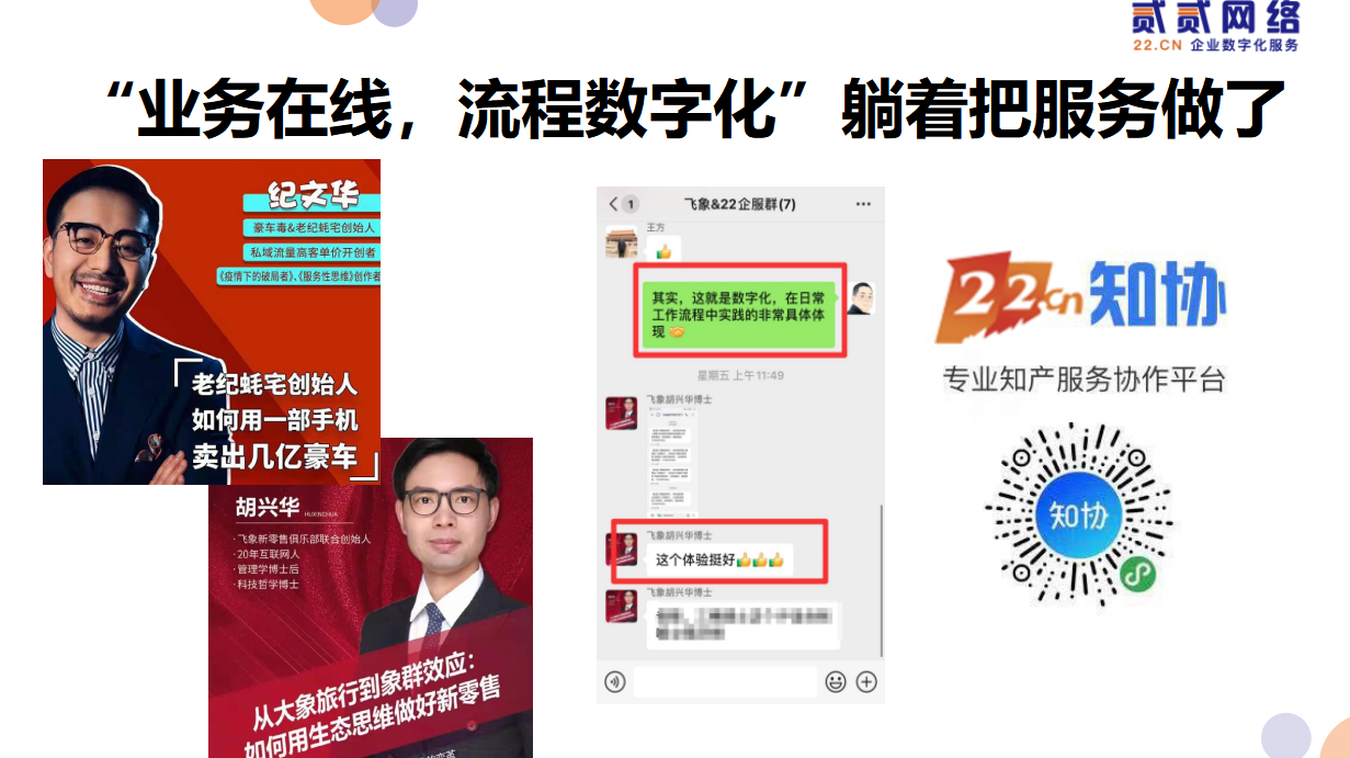 飞象的胡兴华博士,应该也是一个要求很高的人,在他用了我们知协的商标服务后,便是主动说这服务太好了,体验太棒了。