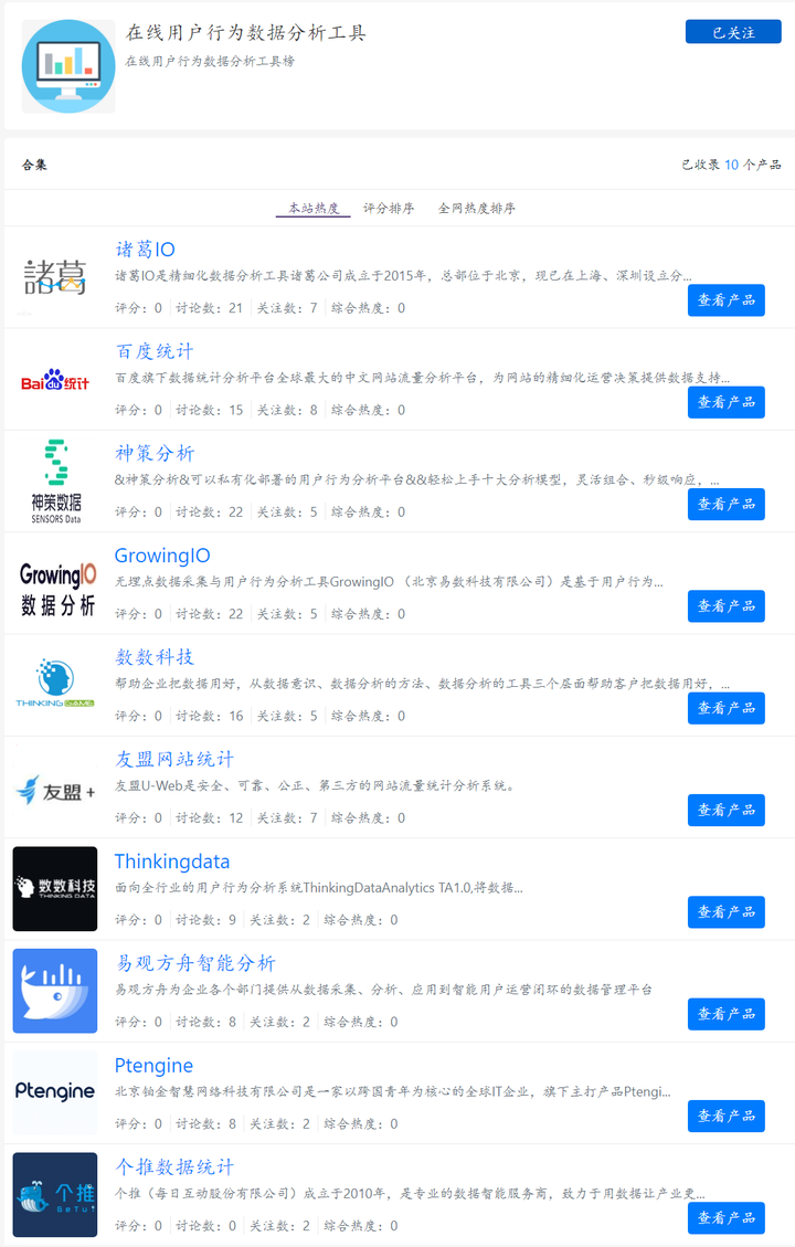 查看最新排行榜单:在线用户行为数据分析工具榜-产品热度-产品介绍等
