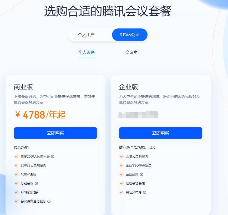 腾讯会议企业版目前要中大型企业,支持定制配置和私有化部署,最大支持2000方的会议。