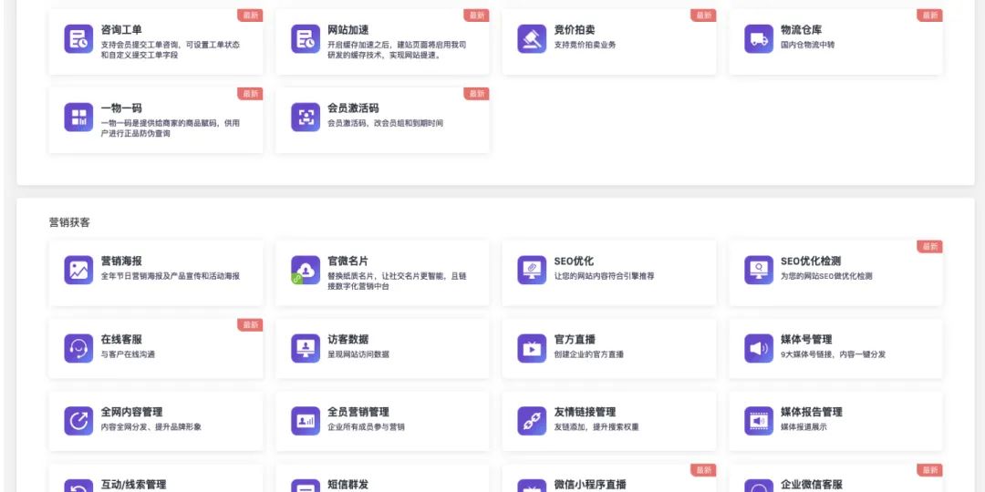 而针对官网的复杂应用,SaaS形态的数字化官网就提现出更多的灵活性。在基础的网站展示功能以外,其他营销应用、内容传播、在线业务等场景,可以随时按需开通应用进行使用,面对复杂且变化剧烈的互联网环境,提供了快速试错的机会,有一些时髦的营销方式就可以立即试用。不需要的功能也可以直接关闭、节省投入。
