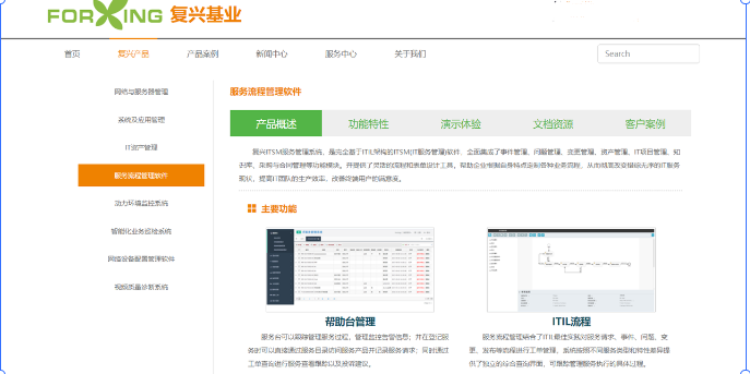 复兴ITSM服务管理系统,是完全基于ITIL架构的ITSM(IT服务管理)软件,全面集成了事件管理、问题管理、变更管理、资产管理、IT项目管理、知识库、采购与合同管理等功能模块。并提供了灵活的流程和表单设计工具,帮助企业根据自身特点定制各种业务流程,从而彻底改变错综无序的IT服务现状,提高IT团队的生产效率,改善终端用户的满意度。