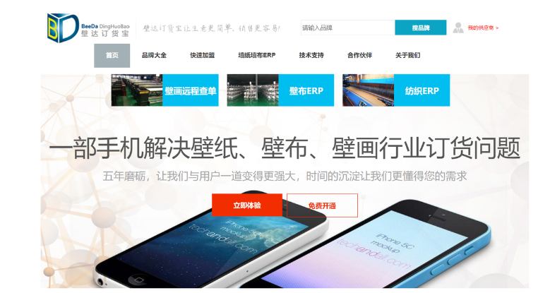 壁达订货宝是国内壁纸、壁布行业的首款移动订货系统,帮助壁纸工厂、贸易商快速构建专属的客户查货、订货、下单、支付,开拓分销渠道,加速资金回笼,让销售更容易,通过这个系统,潜在客户可以快速加盟企业,企业也可拉动与下游客户之间的订货协作、新版本市场推广、库存查看、物流跟踪、渠道沟通等环节的紧密协作,形成稳定移动终端商圈,迎接互联网+时代渠道销售模式变革。