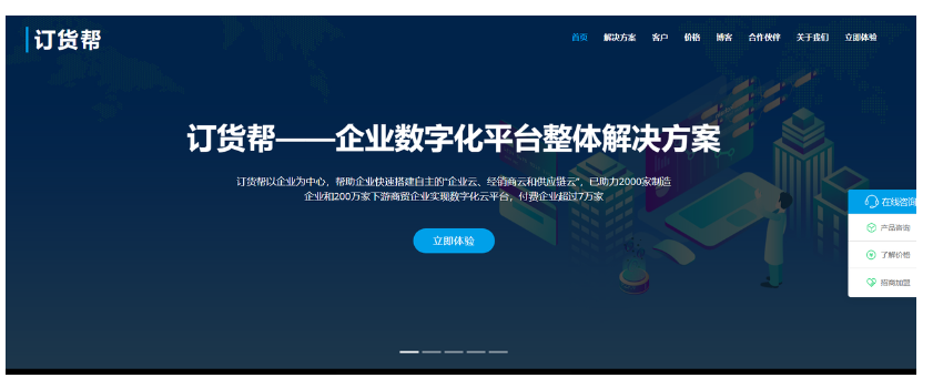 易订货是一个全渠道营销互动平台,是铱云科技为B2B企业打造的,融合“订货商城+进销存+CRM+配送管理”的业务协作平台。易订货主要是以品牌定制的订货商城展示商品,引流客户,获取订单;以进销存和配送管理实现备货和送货管理;以CRM实现销售管理和客户互动;以数据驱动业务精细化运营。从而增加客户,提升销量,降低成本,加速资金流转,助力B2B企业实现数字化智能化变革,让生意更简单!