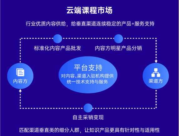 不管是有课程找流量的内容方还是拥有学员缺乏课程的渠道机构,通过V8的云端课程市场,您可以将海量的课程引入到您的网校平台,通过流量变现,赚取利润。