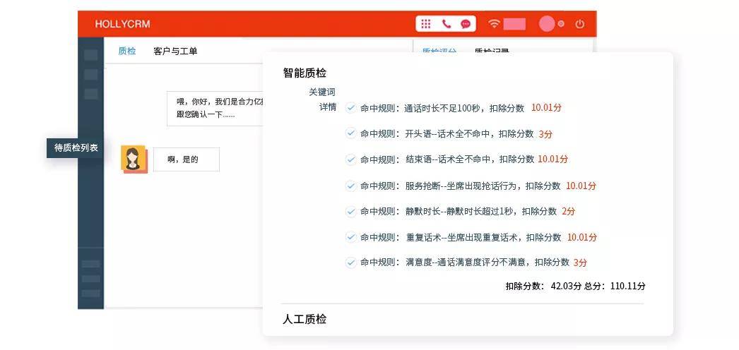 1、通话/在线,双重质检