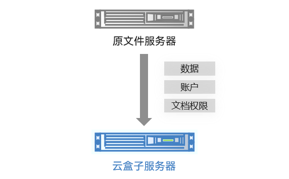 云盒子提供自动化数据迁移工具,将原文档服务器的数据、账号、权限通过工具实现自动化迁移。