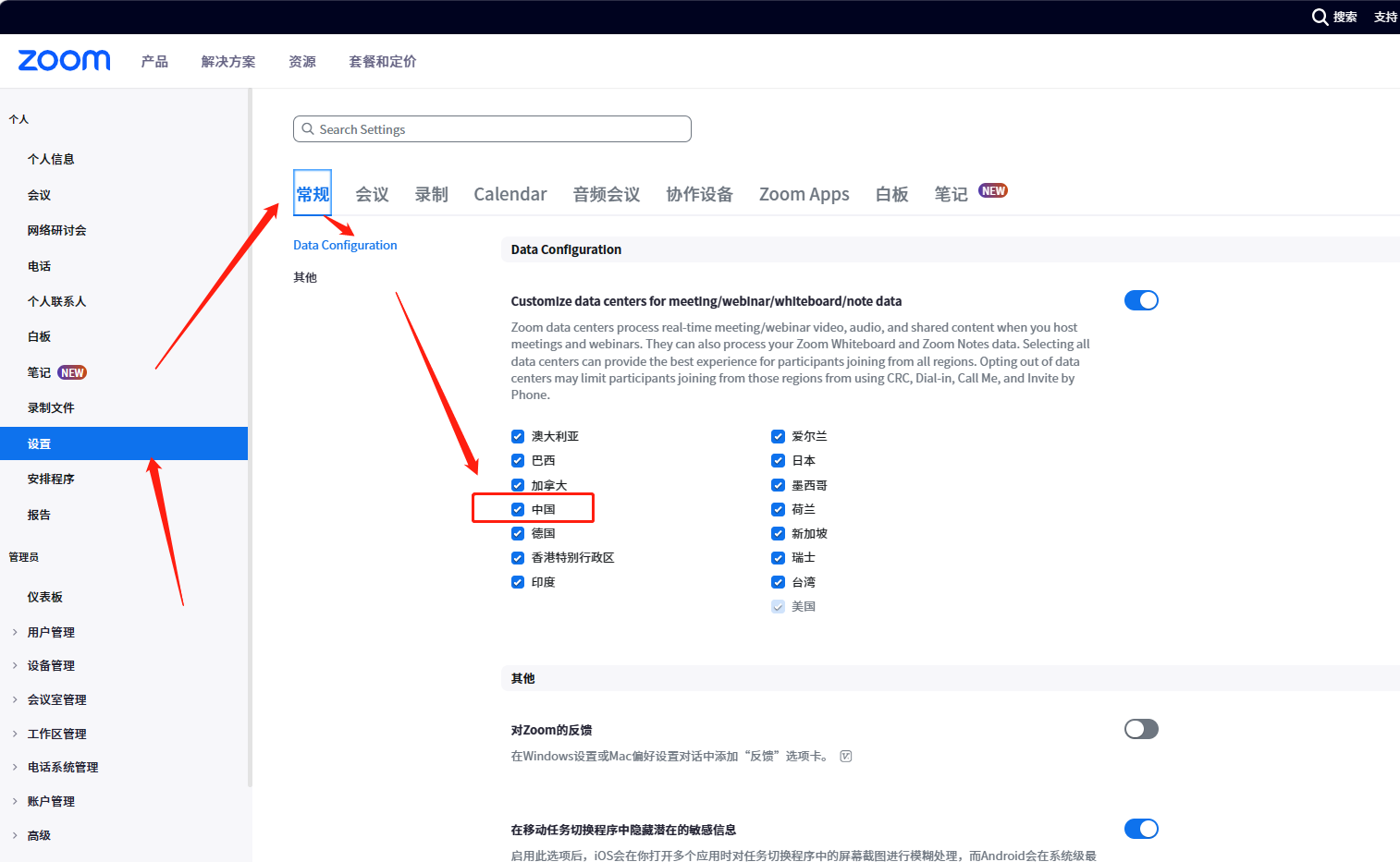 2,发起会议的账号没有中国数据中心