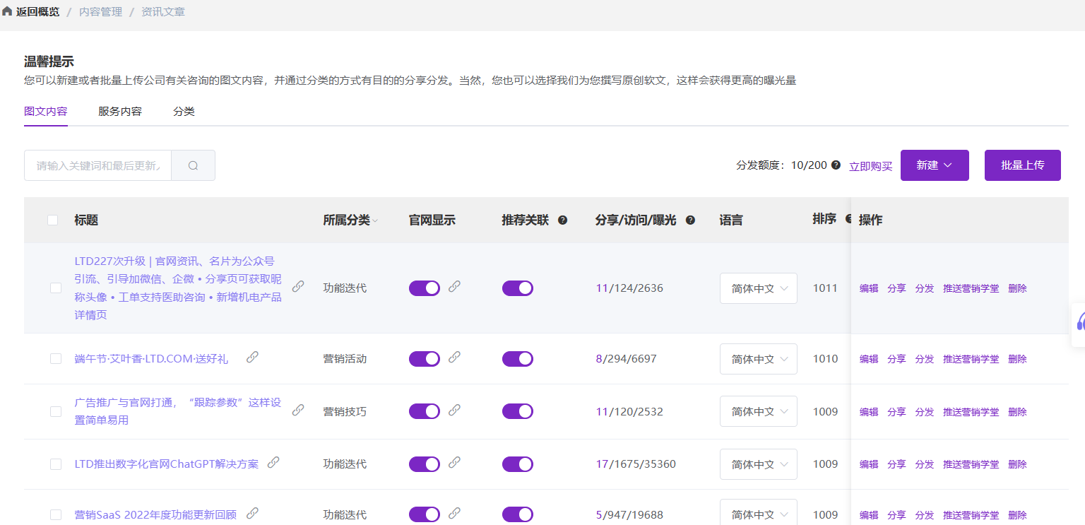7.LTD营销SaaS:通过LTD营销SaaS等工具,快速地推广新产品或操作活动,拓展新用户,增加网站流量和转化率。