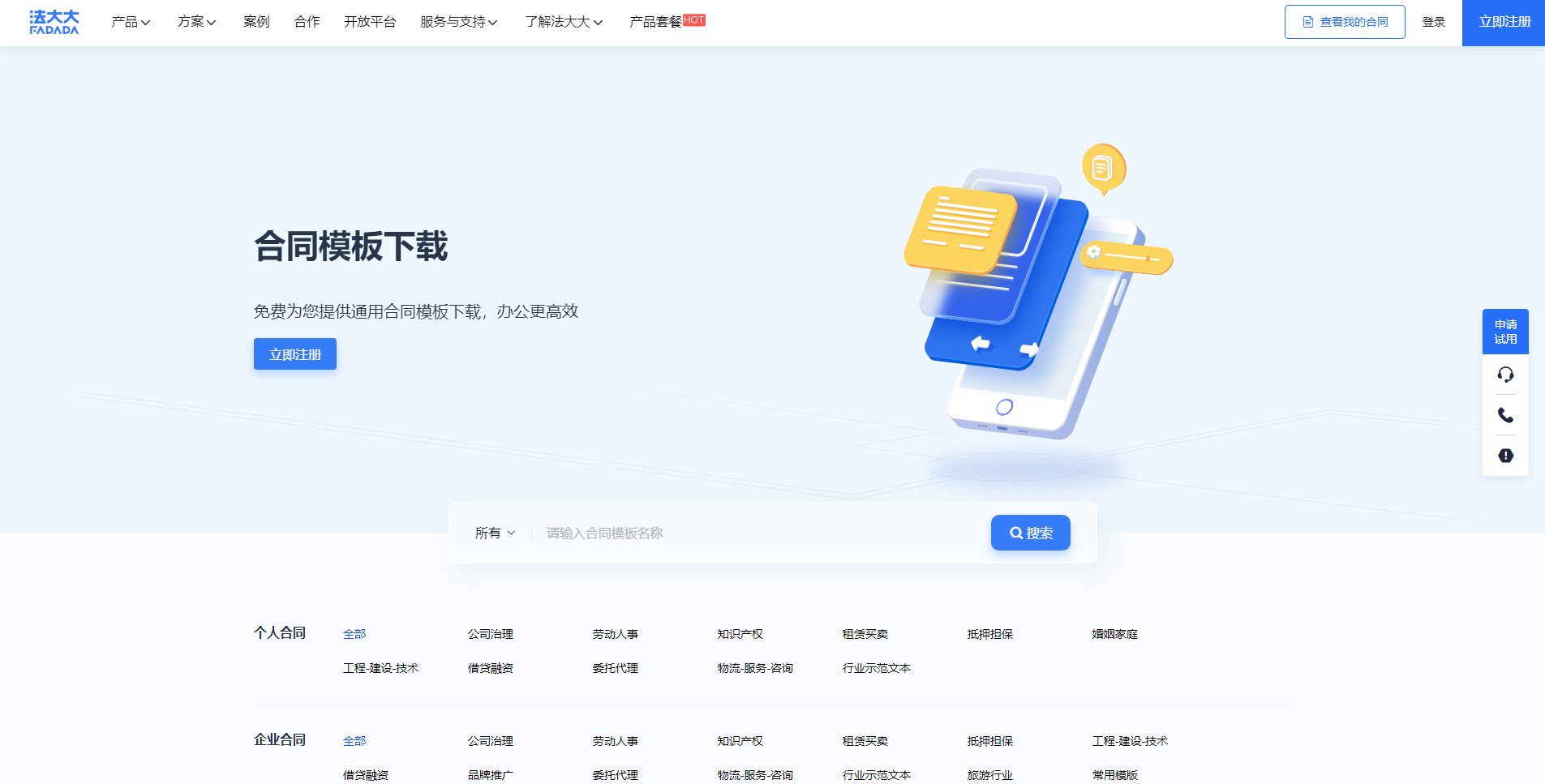 法大大电子合同平台为用户提供了丰富的模板库,包括租房合同、劳动合同、借款合同、买卖合同等多种类型的模板,覆盖了各行各业的需求。用户只需选择合适的模板,填写相应的信息,就可以在线完成合同的签署。