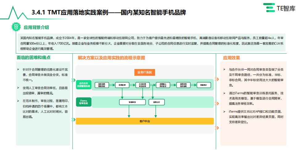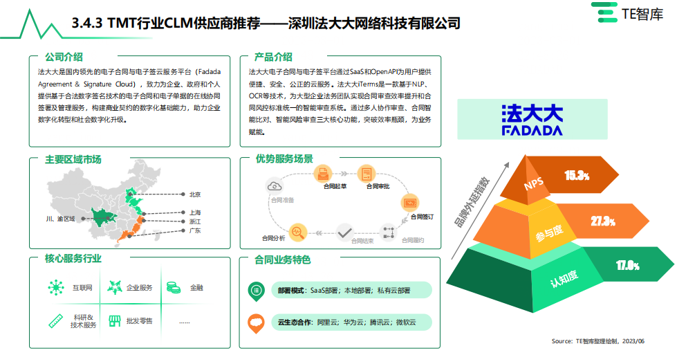 据悉,该报告是TE智库基于当前供给侧厂商选择性进化,专业CLM厂商、传统管理软件厂商、电子签名厂商以及法律科技厂商之间的群雄逐鹿局面,以实践角度为核心,汇总CLM厂商在各行各业的卓越案例、梳理该领域代表厂商,向市场提供现阶段选择CLM产品的参考对照范本。