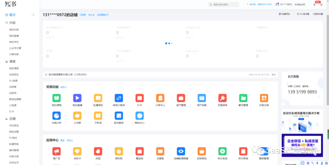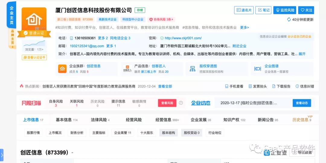 创客匠人,是资料当中唯一一家在新三板上市的企业,公开渠道未见其他融资信息,创客的后台跟小鹅通是挺像的,大家可以自己对比看看。