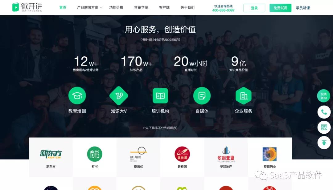 大概推算时间,大家都经历过逻辑思维爆火的时间点,知识付费兴起,分答、知乎问答等等,因为互联网技术设施逐渐完善,移动支付(支付宝、微信支付)平台搭建完成,大多数目前的 SAAS 企业都是创立在那几年,经过几年的市场磨炼,当下来看,各家企业转型做 TOB 的服务,也是顺应时代趋势,但是,也是因为前几年的积累,他们才有机会被我们看到。