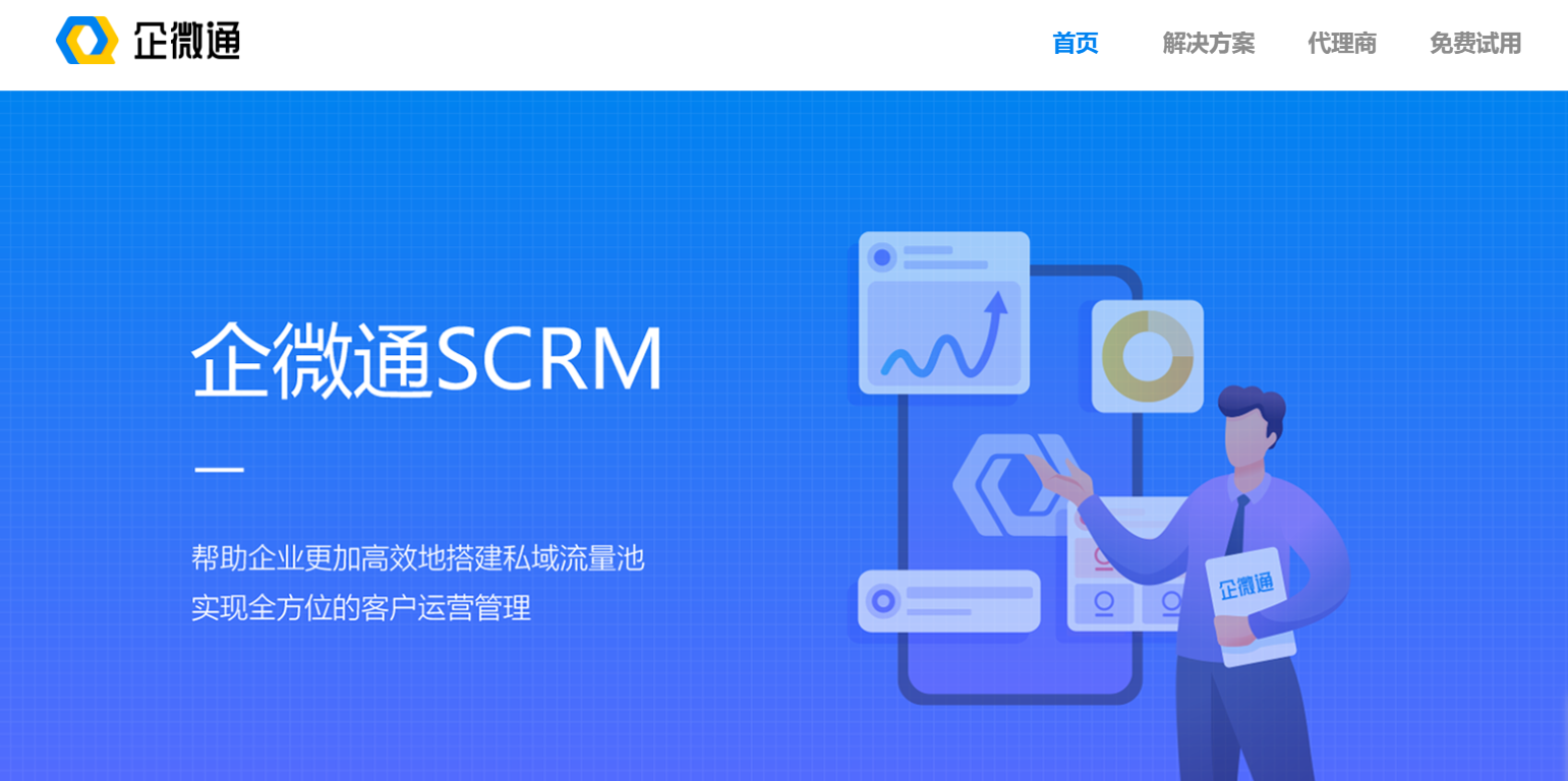 微信企业SCRM管理系统平台,互通企业版微信群私域流量、公众号导购及小程序数据,打造专属企业私域流量池。