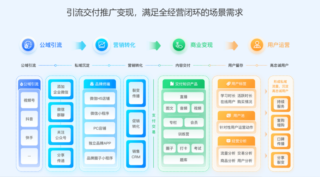 小鹅通知识付费系统,为自媒体知识创业者提供更稳定超清的SaaS在线教育直播系统,支持图文、音频、视频录播、超级会员、训练营等众多功能痛点,多终端无延迟观看让学员学习更方便,老师授课更轻松。小鹅通助学工具包含打卡、考试、练习、作业本、题库、证书、表单、活动管理、随堂检测、测试互动、付费问答等数十种营销玩法帮助内容变现。