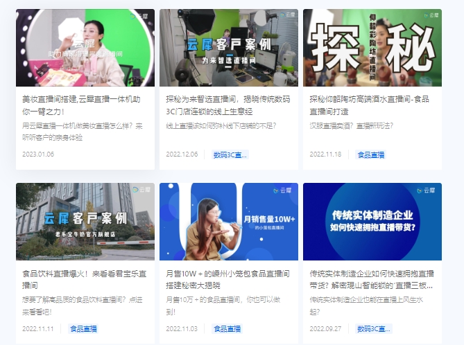 云犀直播系统多年来,不断积极拓展业务领域,与多个行业的客户建立了紧密而深入的合作关系,相关客户覆盖多个行业,有美妆直播间、探秘来智选、探秘仰韶陶坊高端酒水、食品饮料、小笼包直播等行业客户案例,以下只是截取了部分客户案例。