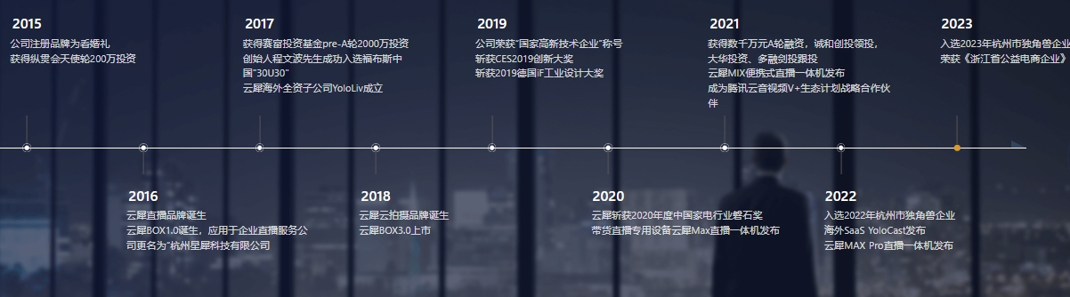 杭州星犀科技有限公司创立于2015年,致力于成为全球领先的直播解决方案提供商。公司旗下拥有云犀、YoloLiv (海外)两大品牌,云犀在直播行业深耕7年,已形成国内+海外两个市场,是国内少数几家同时掌握直播硬件研发、SaaS开发能力的国家高新技术企业,业务已覆盖全球众多个国家和地区。获得多项资质证书,专业能力备受认可。