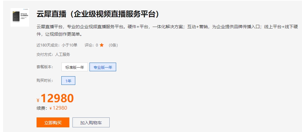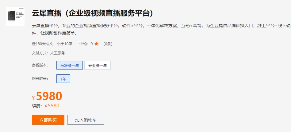 云犀直播收费方式是根据不同版本来的,有标准版和专业版,标准版是5980/年,企业版是12980/年,用户可根据自身需求来选择合适的版本~