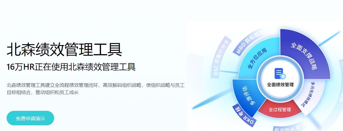 北森绩效云管理工具建立全流程绩效管理闭环,高效解码组织战略,使组织战略与员工目标相结合,推动组织和员工成长。