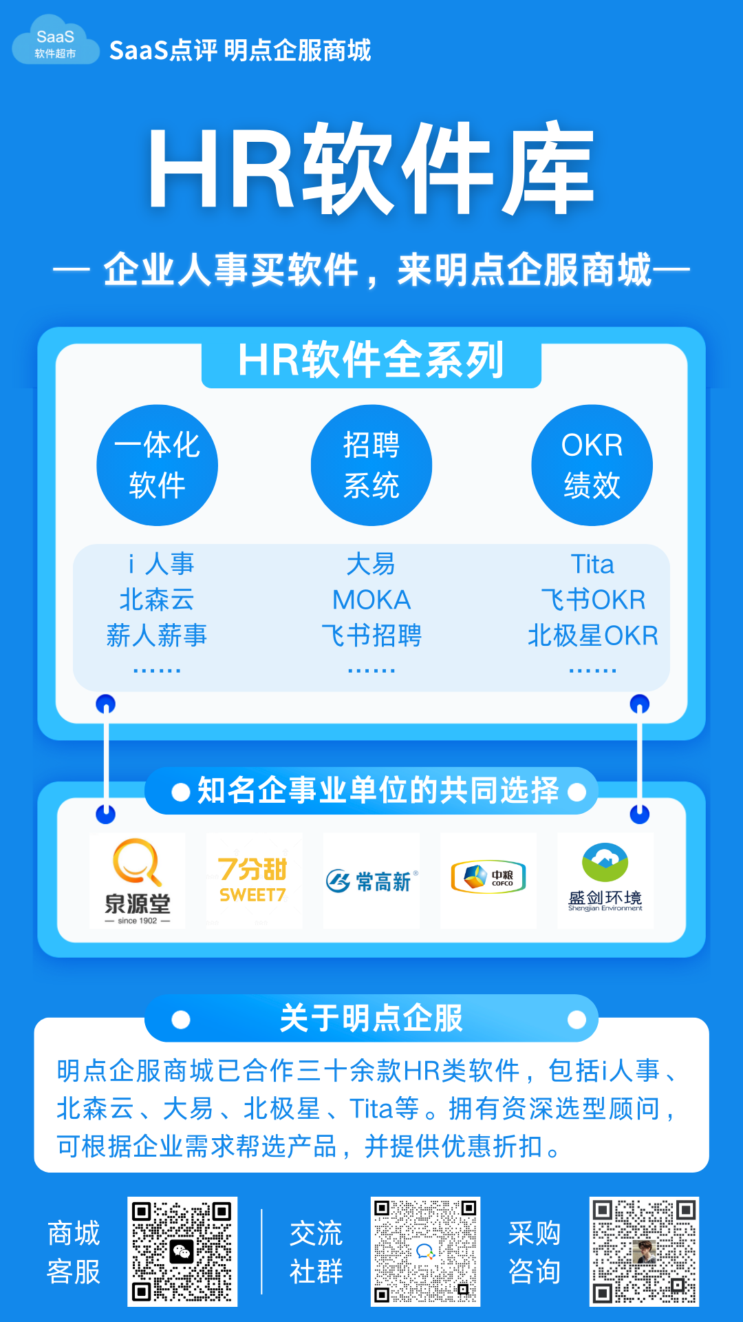如果需要采购绩效管理软件,都可以通过我们企服商城购买,这边是软件超市,代理合作了蚂蚁绩效、Tita、飞书、北极星、北森云、泛微、红海云等多款绩效管理系统,我们会有专业选型顾问帮您介绍推荐匹配的产品/版本,还有专属优惠福利可以领取。扫描下方二维码即可进群哦~
