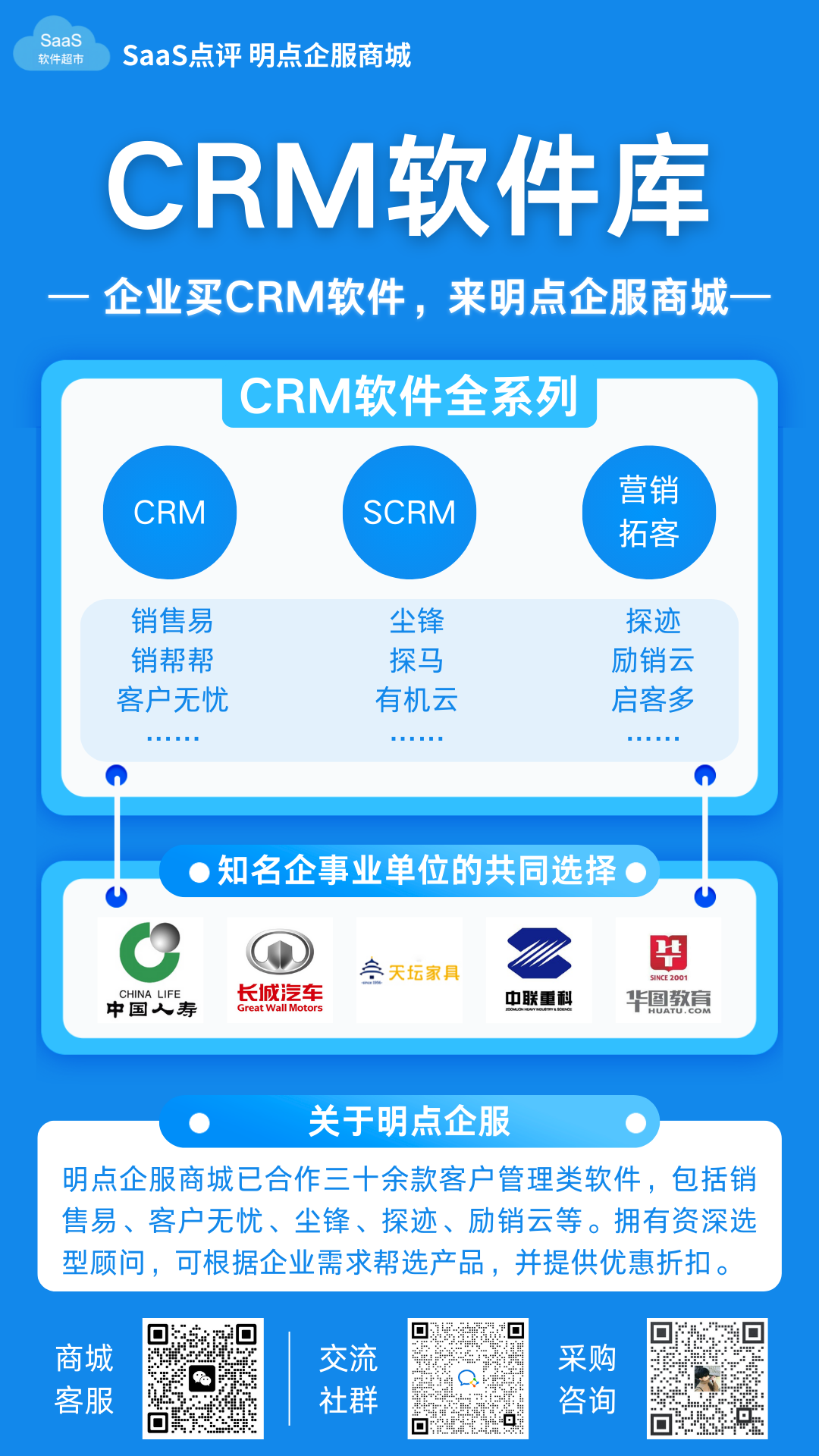如果需要采购励销云或探迹软件,都可以通过我们企服商城购买,我们会有专业选型顾问帮您介绍推荐匹配的产品/版本,还有专属优惠福利可以领取。扫描下方二维码即可进群哦~