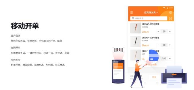 扫描商品条码,一键无线打印、软硬一体,更快速、高效