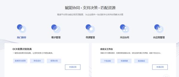 支持询比价、招标、竞价等多种全流程在线业务模块。