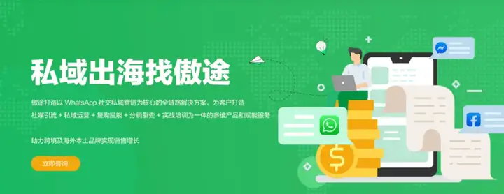 傲途SocialEpoch提供结合社交引流、私域运营、复购赋能、裂变平台以及实战培训为一体的增长服务方案,通过海外私域营销模式,实现与用户一对一直接触达、低成本获客及企业数字化营销,助力DTC出海品牌实现战略性营销增长。