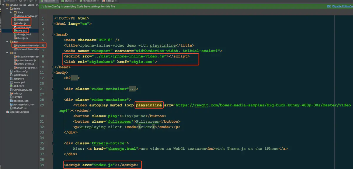 <script src="js/iphone-inline-video.js"></script><script src="js/videos.js"></script>videos.js中的代码看下图: