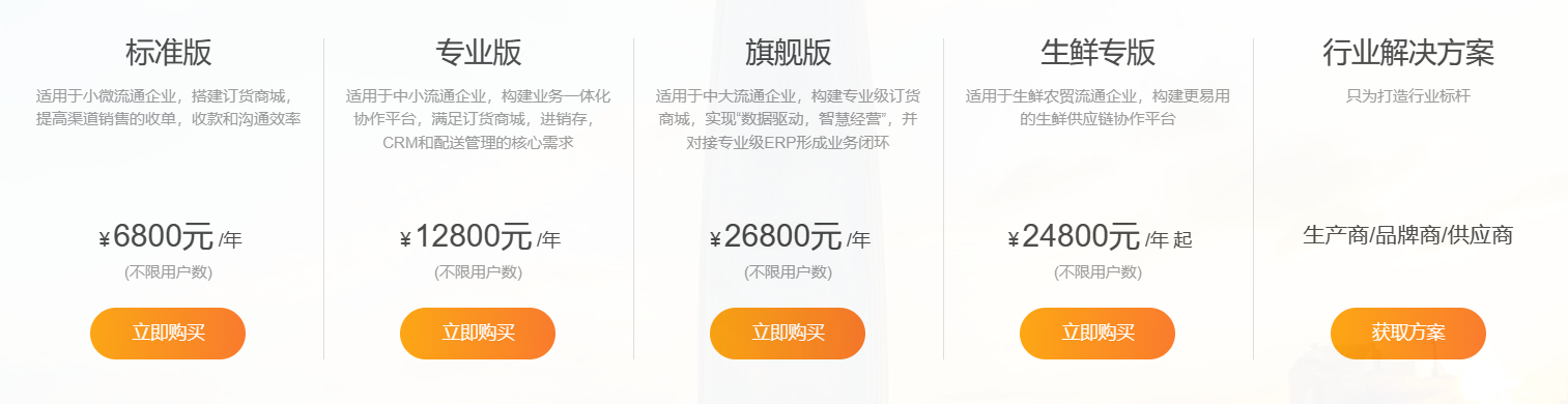 易订货生鲜专版一共有四个版本,分别是标准版、专业版、旗舰版、生鲜专版。按年收费。