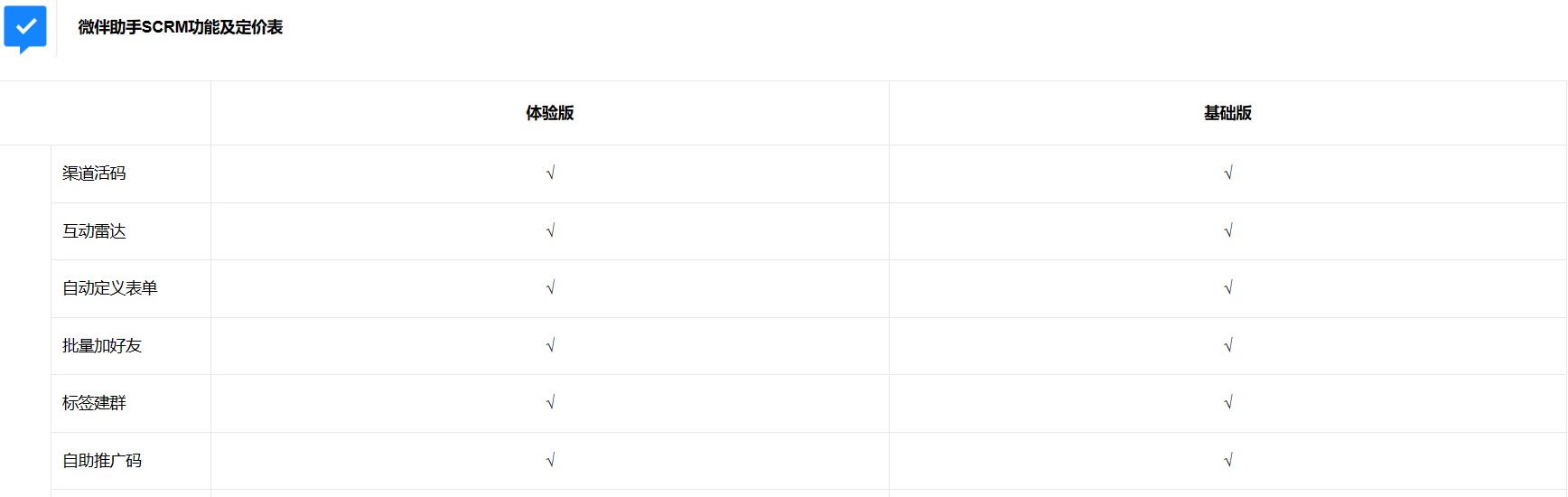 微伴助手是集营销获客、销售管理和客户服务于一体的客户管理系统,已服务超过25万+企业。提供社群运营、会话存档、渠道活码、群裂变、任务宝、群SOP等百余项功能。