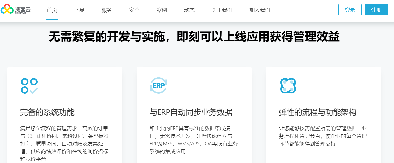 在过去两年间,携客云进一步将其云SRM工具扩展到整个交易流程的协作,包括供应商资源、供应商关系管理;当下及未来一段时间,携客云将把精力聚焦到自身产品与外部其他应用的整合,以一体化解决方案交付给客户。SRM在制造业的运用不再靠项目定制化部署,标准化的SaaS服务可实现规模化铺开到大中小微各种类型制造业,产生由点到面的效果。