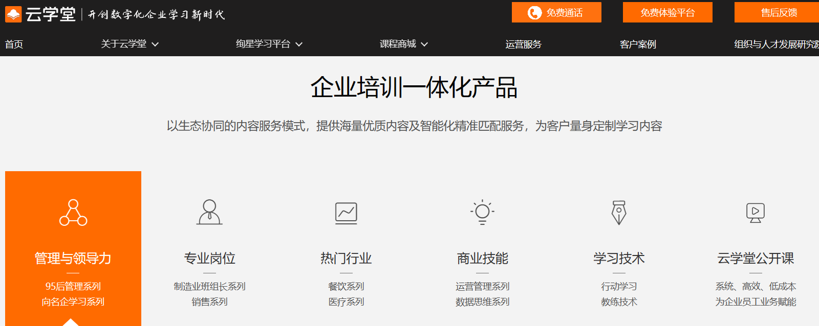 云学堂(全称:江苏云学堂网络科技有限公司)作为一家科技企业,成立于2011年,主要提供内容+平台+服务;为客户提供数字化企业学习解决方案服务,其中包括:软件SaaS服务、内容解决方案服务、数字化企业学习运营服务,是企业培训领域的创新型平台公司。