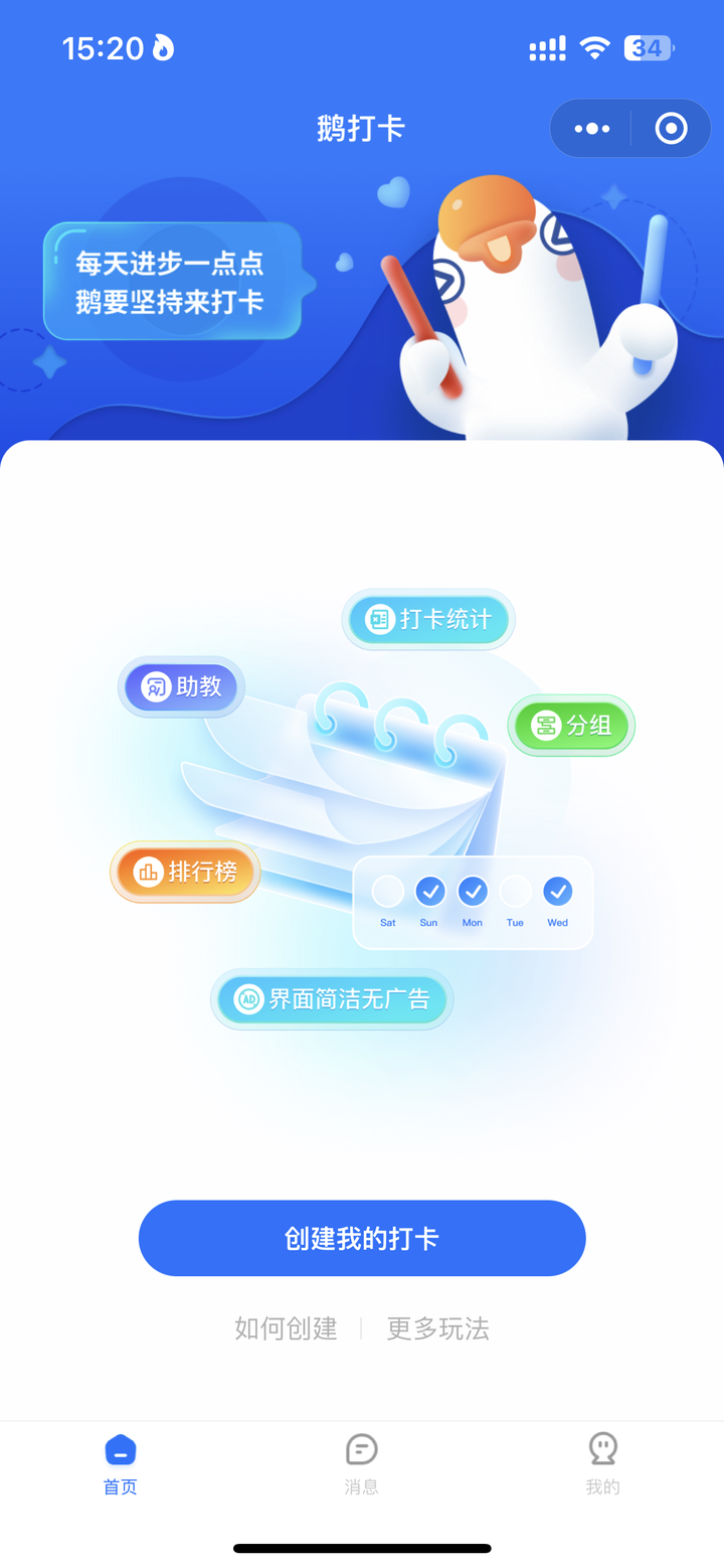 完成以上设置后,您就可以在鹅打卡小程序上每天进行打卡了。
