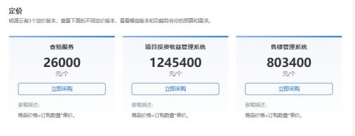 明源云根据不同的版本来进行收费,比如有查验服务、项目投资收益管理系统、售楼管理系统等版本,具体如下:
